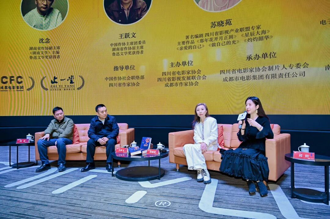 12月29日19:00,“跟著‘大家’看電影”項目第三期活動在成都新明電影院5號廳如期舉行,豪華的嘉賓陣容吸引了約200名觀眾參與這場文學(xué)與影視融合的文化盛宴。本次活動由中國作協(xié)主席團委員、湖南省作協(xié)原主席、魯迅文學(xué)獎得主王躍文擔(dān)任主講嘉賓。同樣是魯迅文學(xué)獎得主,湖南省作協(xié)副主席、《湖南文學(xué)》主編沈念;擁有《那年花開月正圓》《星辰大海》《做自己的光》《灼灼韶華》等作品的著名編劇蘇曉苑擔(dān)任對談嘉賓。青年評論家、成都電子科技大學(xué)文學(xué)院副教授、文學(xué)博士邱田擔(dān)任學(xué)術(shù)主持。